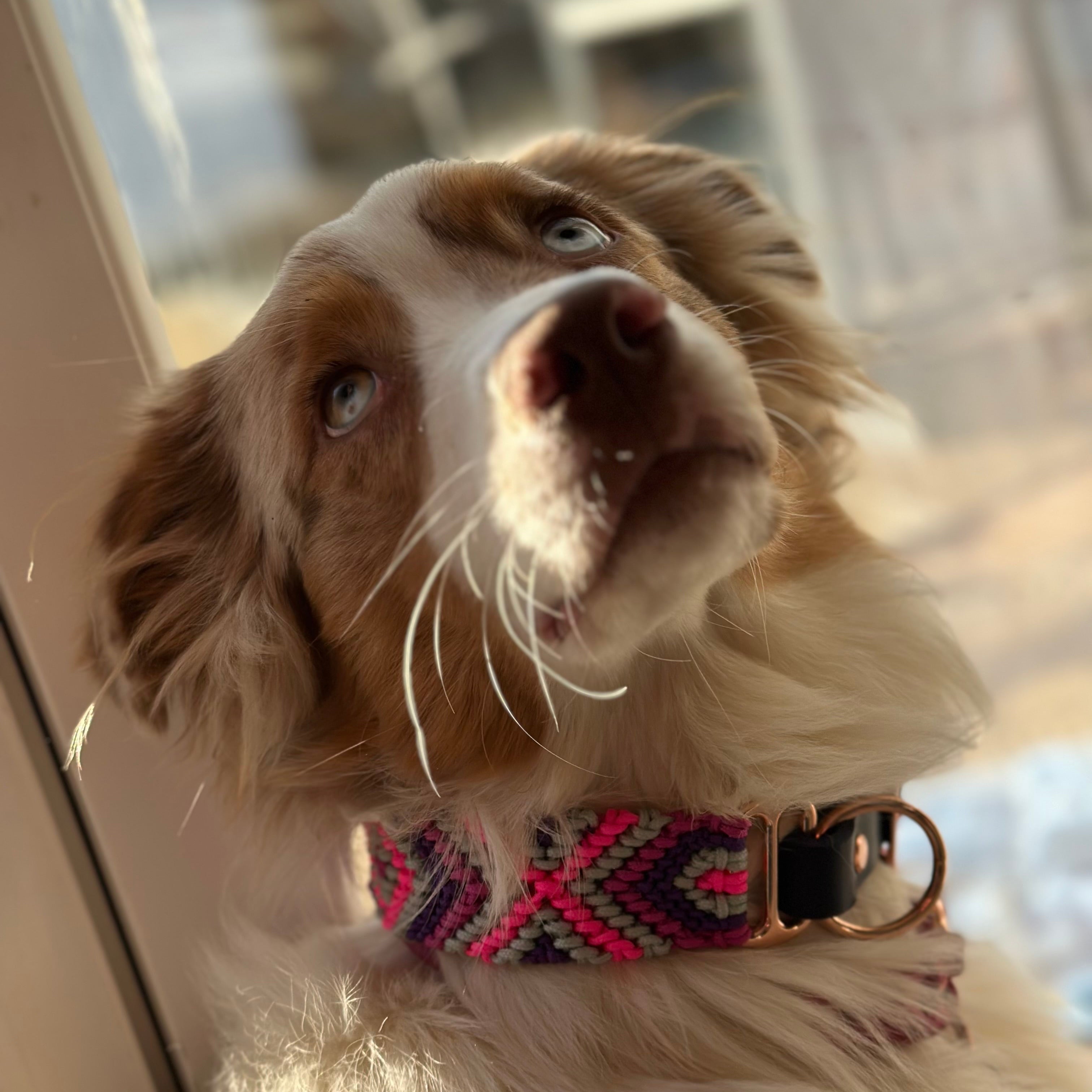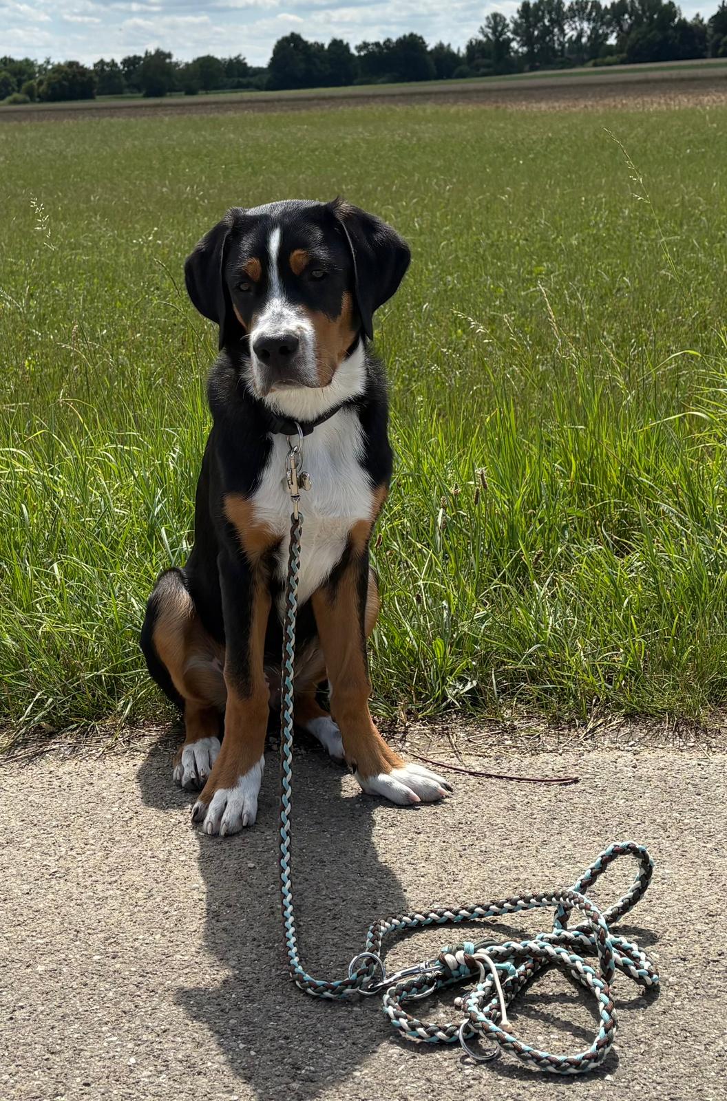 Balu mit einer Paracord-Leine